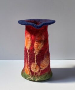 Kathleen Tyree is a self taught fiber artist practicing the ancient art of wet felting. Through the process of layering, agitation, and shaping, Kathleen hand crafts wool fibers into sculptural vessels that blur the line between art and functionality, as well as creating wet felted landscapes and abstract wall art. Click here to shop available works by Kathleen Tyree.